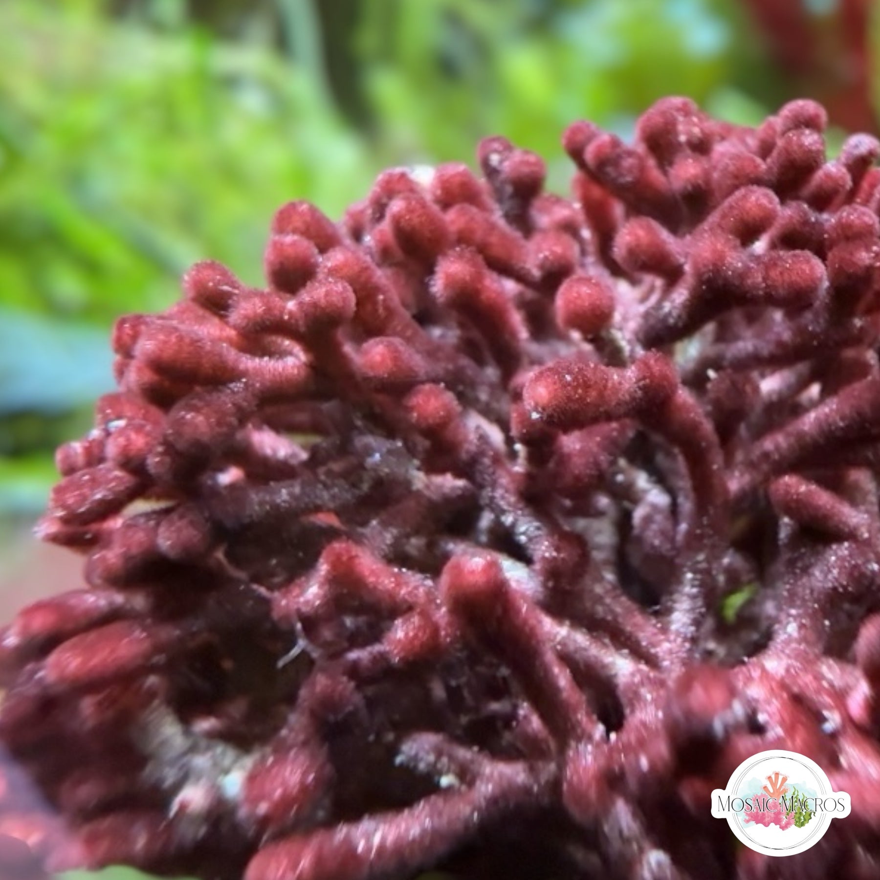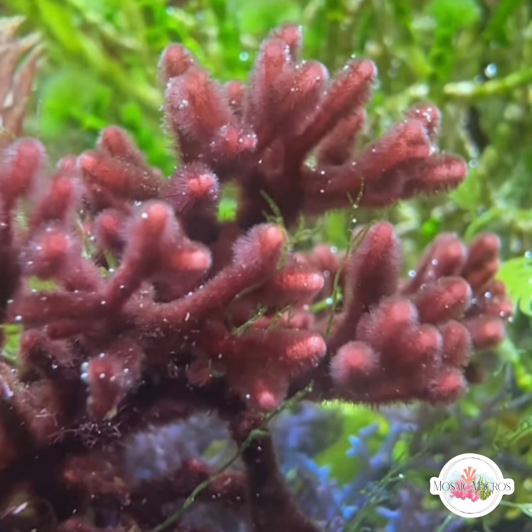 Galaxaura sp, also known as “Thickets”, are an attractive, reddish-pink macroalgae that grows in the a branching pattern. This species has fine filaments along its thallus giving it a fuzzy appearance, and is not commonly available in the hobby. It is a very, very small species, maxing out at only a couple of inches.