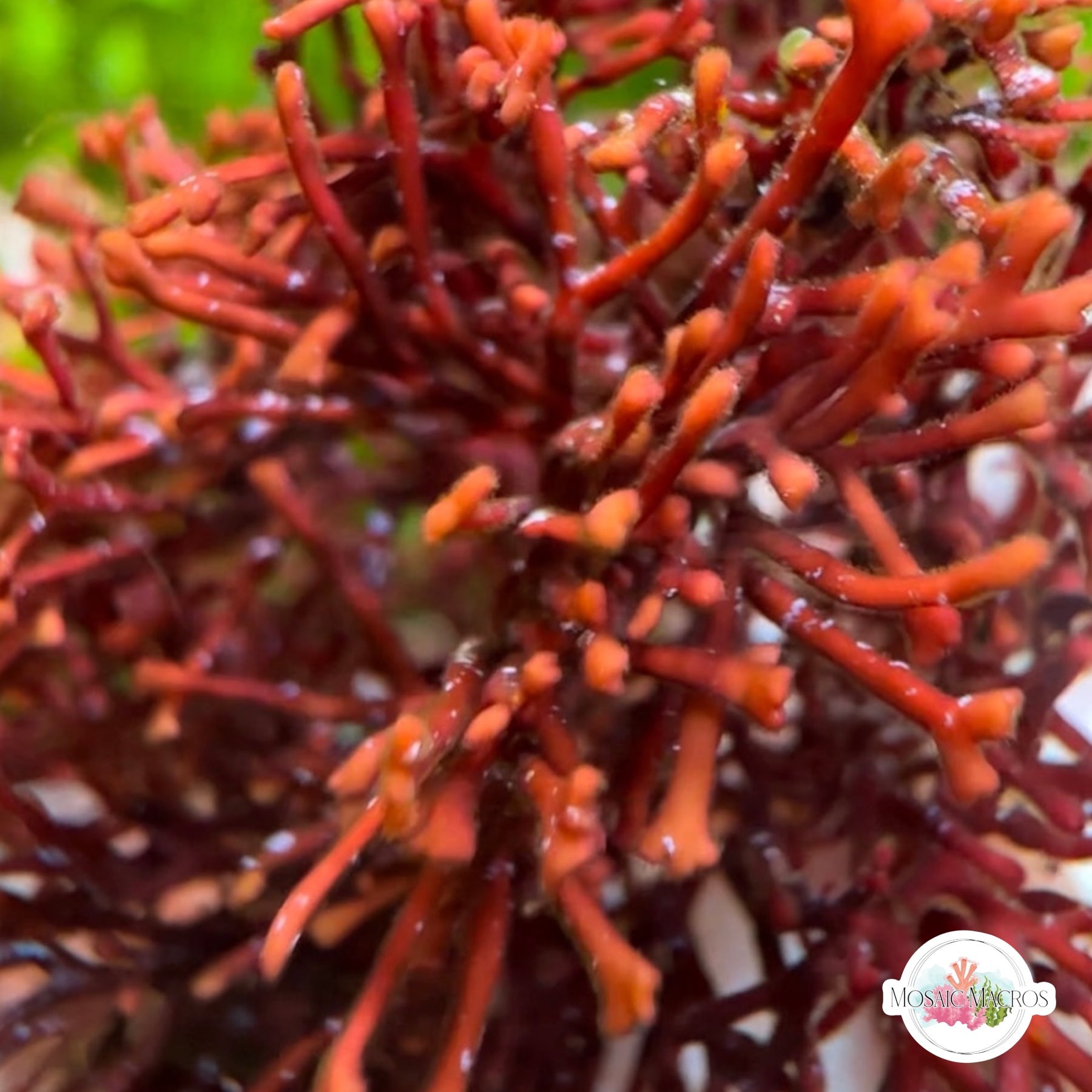 Forked Fireball is an attractive red macroalgae that grows in a branching pattern. It is more ridged than most other macroalgae we offer and grows similarly to Gracilaria. It is a very small species.