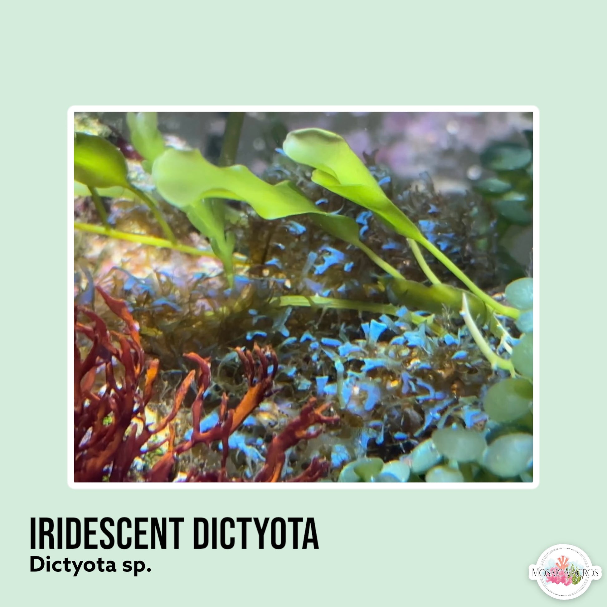 Dictyota is a beautiful brownish-yellow algae that grows in a matting, forked structure. This Dictyota species will develop a beautiful blue iridescent sheen in proper conditions. This species appreciates turbulent flow.
