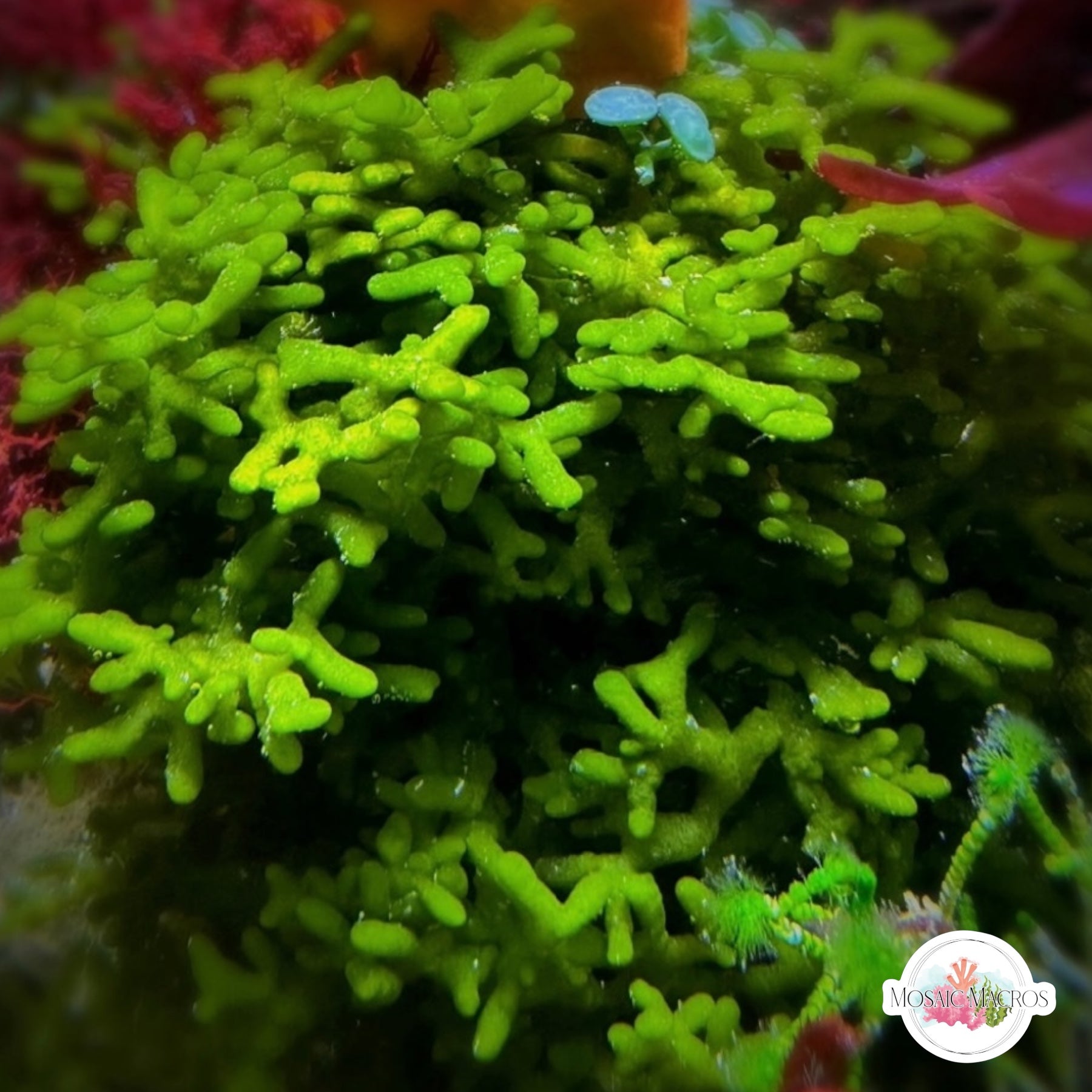 Codium, also known as “Dead Man’s Fingers,” is an attractive green macroalgae that grows in long, green, finger-like branches. The species in this listing is a rare, smaller, paler species of Codium.