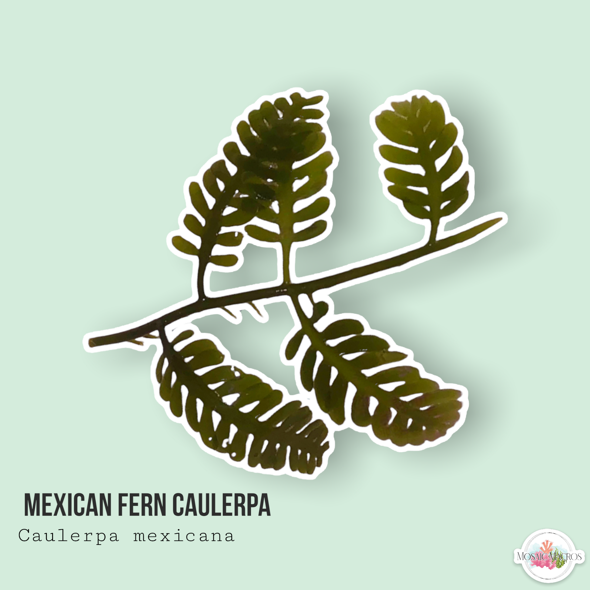 Caulerpa mexicana is a prolifically-growing marine macroalgae that is most often used in the display aquarium due to their attractive, fern-like blades. This species forms a long stolon as well as holdfasts that will hold the algae in place within the sandbed or rockwork of an aquarium.