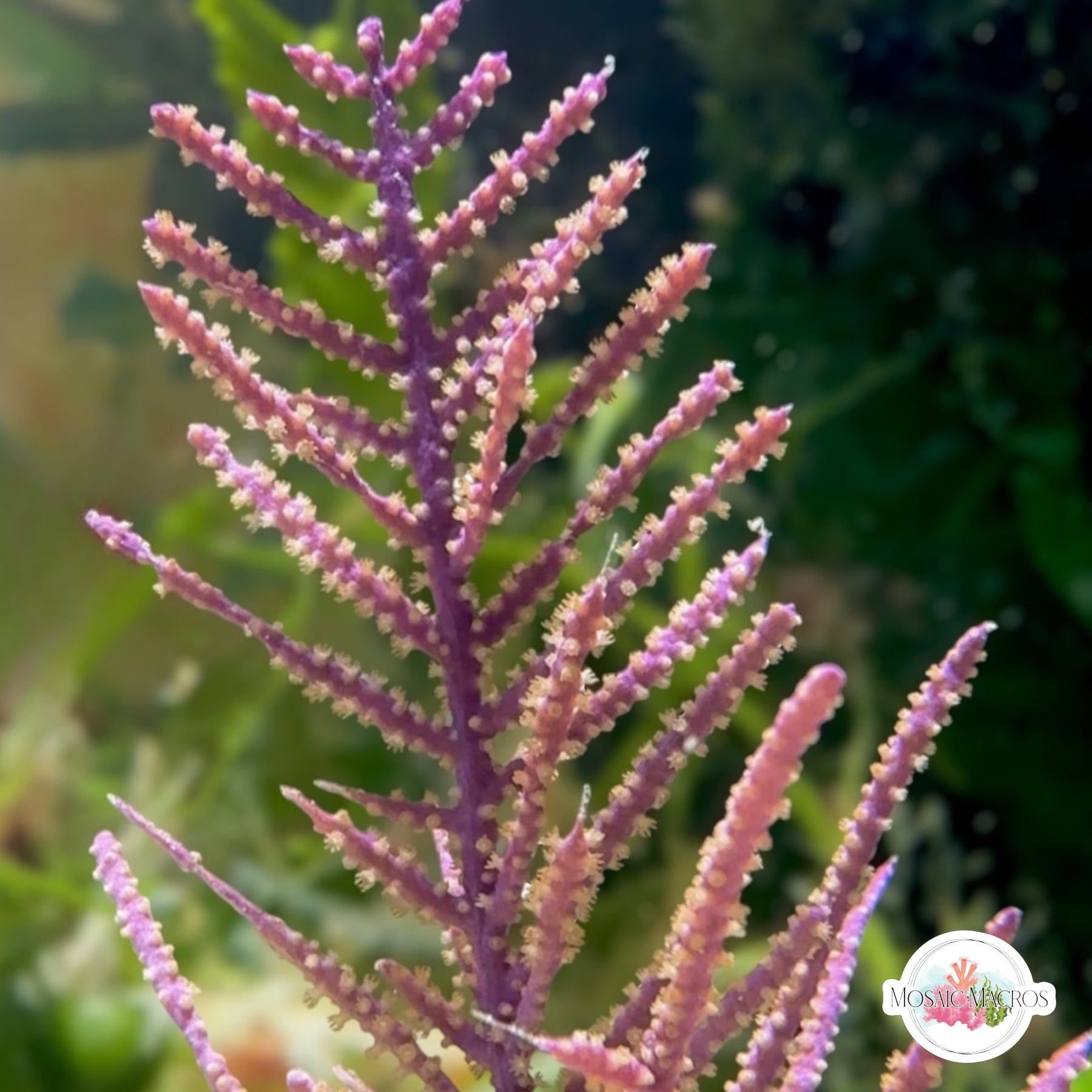 A beautiful species of photosynthetic gorgonian that can get quite large (up to 12” height in optimal conditions.) This species of gorgonian appreciates moderate-high lighting & moderate-high flow, and is a favorite species of ours in macroalgae tanks!
